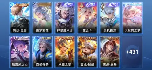 永恒钻石IV段位-128英雄-442皮肤-1典藏-1珍品无双-3无双-2珍品传说-42传说-146史诗 【英雄全皮】:嬴政全皮,钟馗全皮,太乙真人全皮,鬼谷子全皮,蒙恬全皮,阿古朵全皮,空空儿全皮,影全皮,海诺全皮 【荣耀典藏】:武则天英雄,李白鸣剑曳影 【珍品无双】:貂蝉馥梦繁花 【无双皮肤】:韩信群星魔术团,不知火舞花合斗,诸葛亮天机白泽 【珍品传说】:瑶大耳狗之梦,安琪拉酷